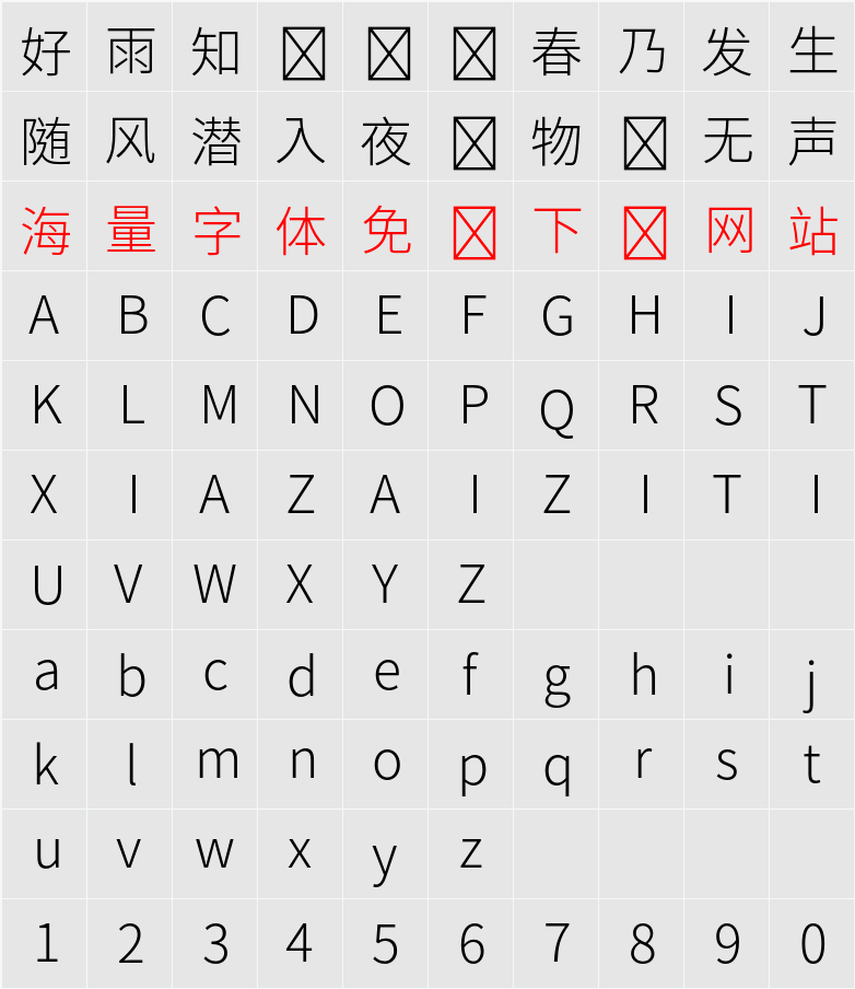 思源黑體 HK Light 字符映射表